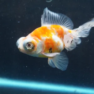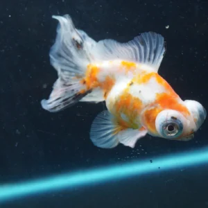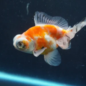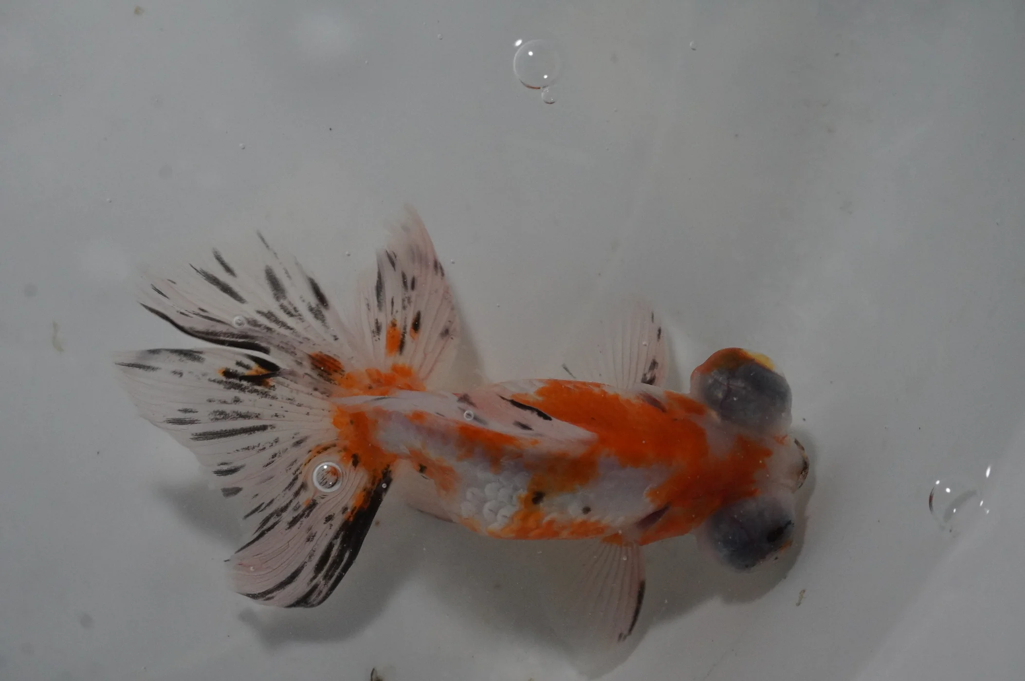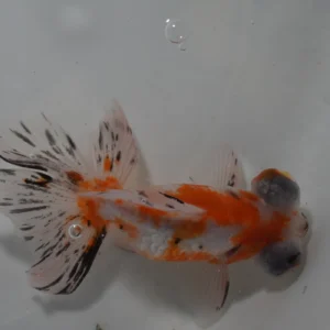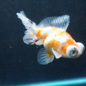 The Butterfly Calico goldfish is a beautiful and unique variety known for its broad, butterfly-shaped tail and vibrant calico coloration. This variety combines the elegant, wide-spread caudal fin typical of Butterfly Tail goldfish with a striking mix of colors, including patches of red, white, black, blue, and yellow. The flowing tail resembles butterfly wings in motion, creating a mesmerizing display as the fish swims. Loved by aquarists for its graceful movements and eye-catching appearance, the Butterfly Calico is a popular choice for both beginners and experienced goldfish keepers.